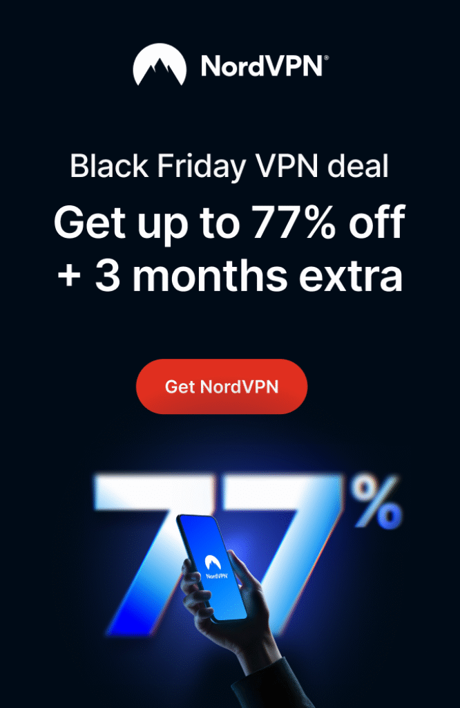 NordVPN Black Friday/Cyber Monday Campaign: NordVPN Special Offer : get up to 77% off + 3 extra months with a 2-year plan.